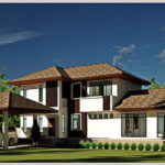 ลักษณะบ้านขนาดสองชั้น ออกแบบด้วยสไตล์คอนเทมโพรารี่ หลังคาออกแบบด้วยหลังคารูปทรงปั้นหยา มุงด้วยกระเบื้องแบบเรียบในโทนสีเข้ม ผนังภายนอกของบ้าน ตกแต่งด้วยโทนสีน้ำตาลเข้ม รอบตัวบ้านติดตั้งด้วยหน้าต่างกระจกใสรอบตัวบ้าน ให้ความโปร่งสบายได้เป็นอย่างดี
