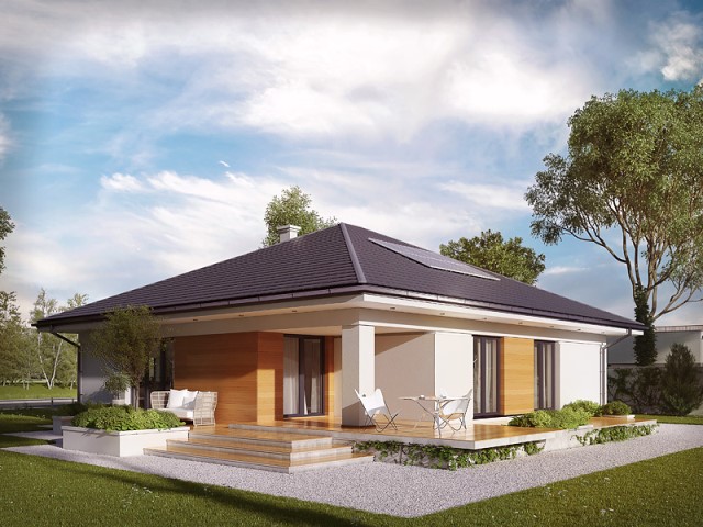 ตัวบ้านขนาดกลางๆ ที่มีพื้นที่ใช้สอยทั้งหมด 266 ตร.ม. ผนังคอนกรีต มาพร้อมการตกแต่งด้วยไม้ มีความเป็นร่วมสมัย ภูมิฐานไปกับรูปทรงของหลังคาปั้นหยา เป็นที่นิยมของคนไทยมาช้านาน