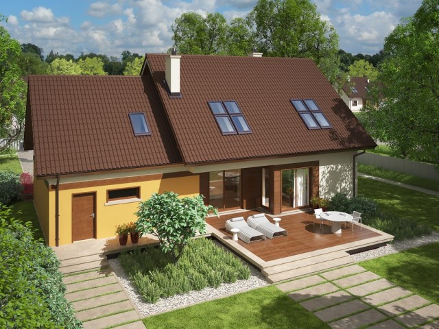 ตัวบ้านขนาดเล็กๆ เลือกใช้โครงสร้างคอนกรีต ออกแบบรูปทรงสี่เหลี่ยมเรียบง่าย มากับหลังคาทรงจั่ว ที่มีการซ้อนชั้นให้เกิดมิติ และเข้ากับฟังก์ชันห้องใต้หลังคา ที่ดูเข้ากันกับแบบบ้าน และปรับใช้ในสภาพอากาศของบ้านเราได้ดีเช่นกัน ตกแต่งจากไม้ในตัวผนัง และพื้นที่เฉลียง ดูเป็นบ้านร่วมสมัยขึ้นมา น่าอยู่มาก