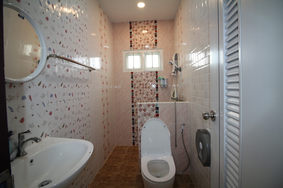 สำหรับห้องน้ำนั้น มีลักษณะเป็นห้องแคบยาว ภายในแบ่งพื้นที่การใช้งานแบบแห้งและแบบเปียกได้อย่างเป็นสัดส่วน จึงใช้งานได้ง่าย