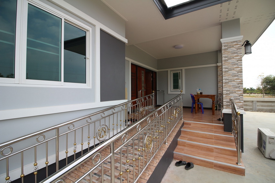 อีกหนึ่งความโดดเด่นของบ้านหลังนี้ คือ การออกแบบทางเดินแบบลาดเอียดพร้อมกับราวจับ ตั้งแต่บริเวณทางเดินไปจนถึงประตูเข้าบ้าน เพื่อเป็นการอำนวยความสะดวกให้แก่ผู้สูงอายุภายในบ้าน
