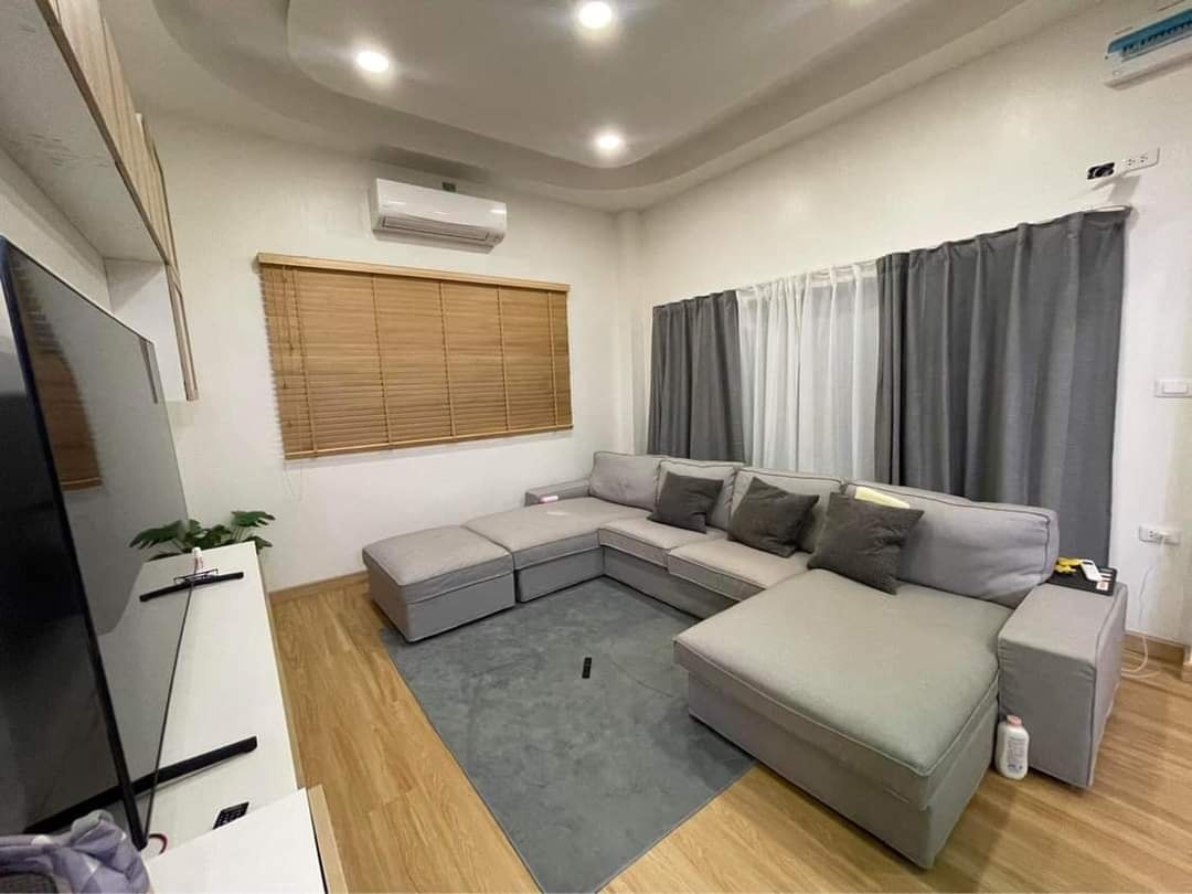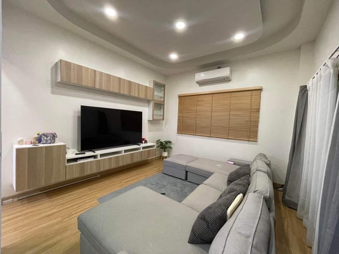 ภายในห้องนั่งเล่น จะถูกตกแต่งด้วยบรรยากาศที่เรียบง่าย เลือกใช้โทนสีที่มีกลิ่นอายแบบมินิมอล จึงเหมาะกับบรรยากาศการพักผ่อนสบาย ๆ