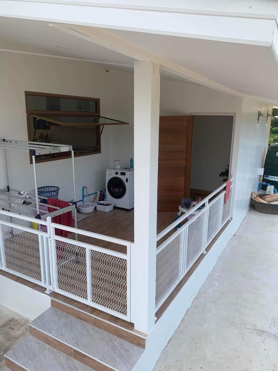 ในส่วนของพื้นที่หลังบ้าน จะมีเฉลียงที่ถูกล้อมรั้วเอาไว้ ใช้เป็นลานซักล้างอเนกประสงค์ ซึ่งให้ความสะดวกและความปลอดภัยได้ในระดับหนึ่งเลย