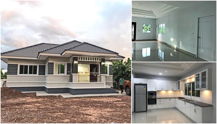 บ้านทรงปั้นหยาชั้นเดียว ประกอบไปด้วย 3 ห้องนอน 2 ห้องน้ำ ห้องโถงกลาง ห้องครัว และเฉลียงหน้าบ้าน ใช้งบประมาณในการก่อสร้าง 1.4 ล้านบาท (ไม่รวมตกแต่ง) หากชาวเว็บท่านไหนชื่นชอบบ้านสไตล์นี้ ก็ลองนำไอเดียไปปรับใช้กันได้นะคะ