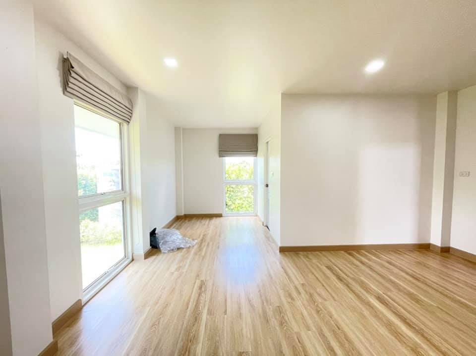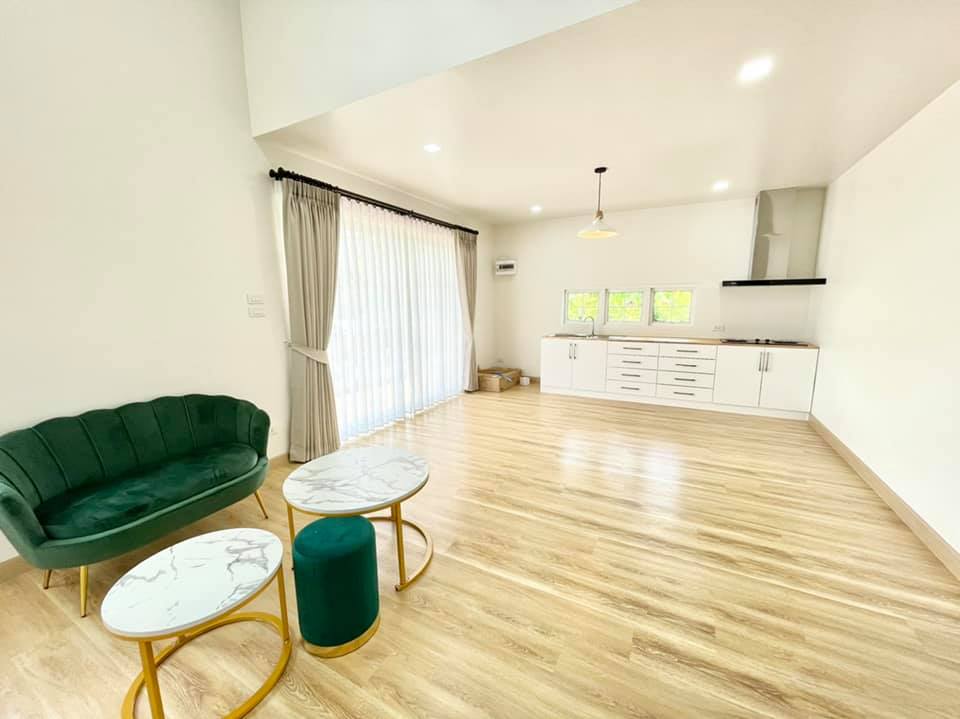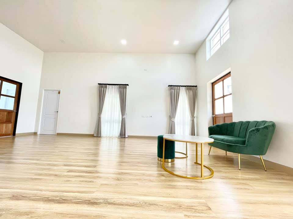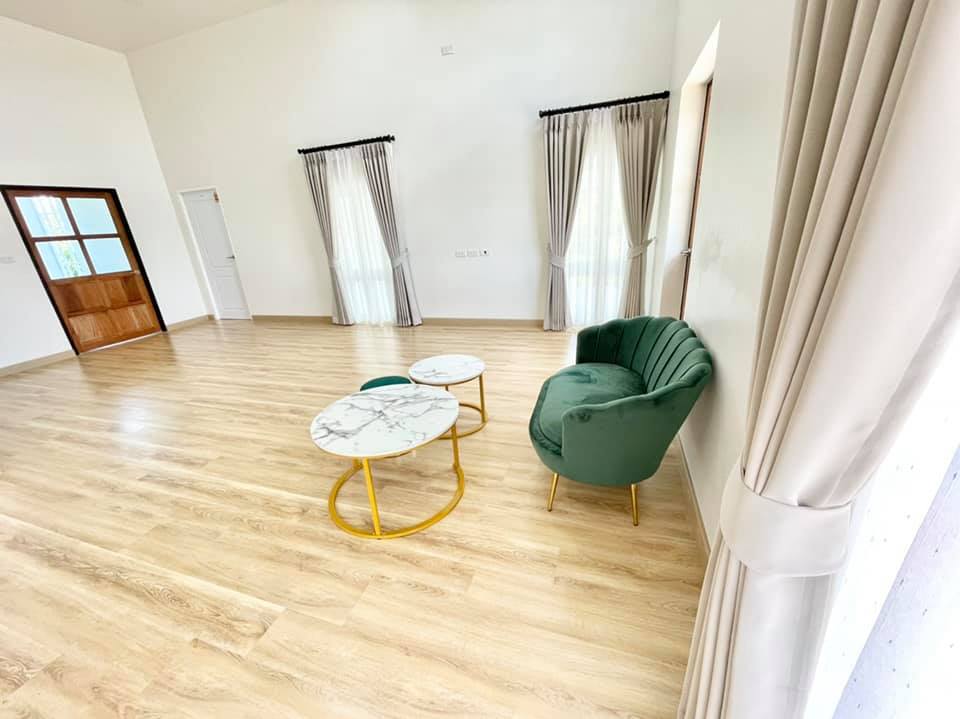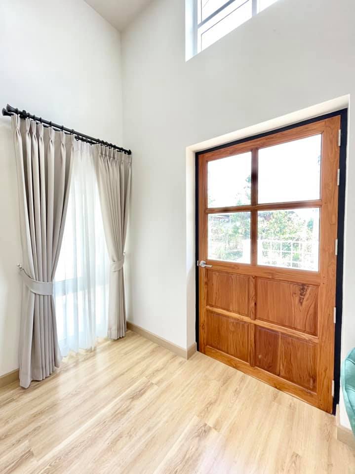 ด้านการตกแต่งภายในนั้น ผนังจะเลือกใช้โทนสีขาวครีม จึงช่วยให้ภายในบ้านดูสว่างและมีมิติมากยิ่งขึ้น พื้นห้องที่เป็นกระเบื้องยางลายไม้ก็ช่วยสร้างบรรยากาศให้ดูอบอุ่นขึ้นไปอีก