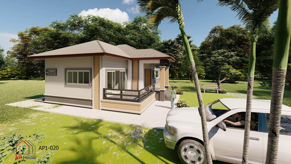 ตัวบ้านเป็นบ้านชั้นเดียว ฐานของบ้านถูกยกขึ้นสูง ออกแบบในสไตล์คอนเทมโพรารีที่เราต่างคุ้นเคยกันดี หลังคาของบ้านเป็นหลังคาทรงปั้นหยา ด้านการตกแต่งนั้น ผนังภายนอกเลือกใช้โทนสีเทายืนพื้น แซมด้วยที่น้ำตาล ทำให้บ้านมีบรรยากาศที่ดูอบอุ่นน่าอยู่