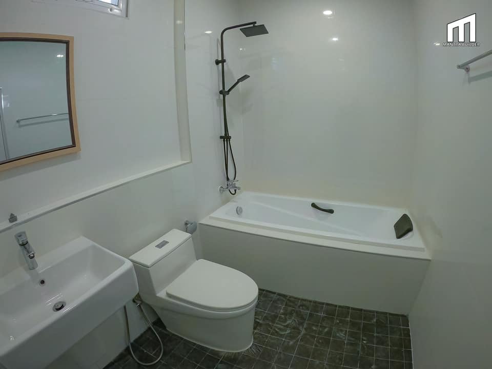 ภายในห้องน้ำมีการตกแต่งในโทนสีขาว โดยมีอ่างน้ำเอาไว้ให้ได้นอนแช่กันอย่างเพลิดเพลินอีกด้วย จึงสามารถใช้งานได้อย่างสะดวกสบาย