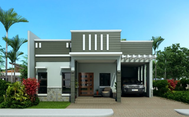 ออกแบบรูปทรงของบ้านที่เรียบง่าย บ้านหลังเล็กหลังคาสแลปเรียบๆ ดูออกแบบง่ายๆ ในสไตล์โมเดิร์น ทูโทนขาว สลับสีเทา ดูเรียบร้อยแต่ก็สวยงามมาก มาพร้อมดาดฟ้ารองรับการใช้งาน