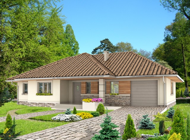 ตัวบ้านโครงสร้างคอนกรีต ที่ออกแบบแปลนเป็นสี่เหลี่ยม เลือกใช้หลังคาทรงปั้นหยา ที่ดูแข็งแรงมั่นคง และได้ความภูมิฐานอีกด้วย ตกแต่งด้วยวัสดุเรียบง่ายอย่างไม้ หินทรายเล็กๆน้อยๆรอบบ้าน และใช้โทนสีครีมของผนังปูน ที่ดูอบอุ่นอีกด้วย