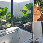 จากบันไดทางขึ้นบ้านจะพบกับเฉลียงโปร่งโล่ง มีพื้นที่ใช้สอยค่อนข้างกว้าง เหมาะสำหรับนำโต๊ะและเก้าอี้มาตั้งวางเพื่อใช้เป็นมุมพักผ่อนรับลมยามเช้า ในส่วนของตัวบ้านเองก็มีการติดตั้งหน้าต่างกระจกไว้โดยรอบ ช่วยให้แสงแดดและอากาศถ่ายเทเข้าไปยังพื้นที่ใช้งานภายในได้สะดวกมากขึ้น