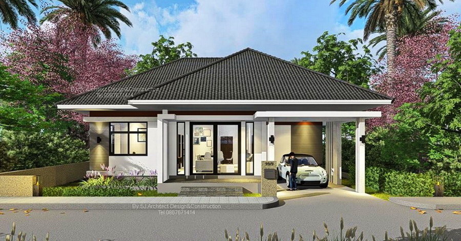 แบบบ้านเดี่ยวชั้นเดียว สไตล์คอนเทมโพรารี 3 ห้องนอน 1 ห้องน้ำ เริ่มงบต้นที่ 800,000 บาท