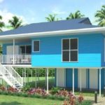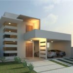 บ้านโครงสร้างคอนกรีต ที่ออกแบบด้านหน้าให้มีสองชั้น มีลานกิจกรรมภายนอก เป็นส่วนจอดรถและเก็บของอีกด้วย