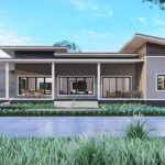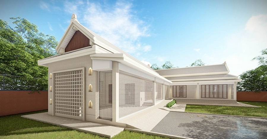แบบบ้านชั้นเดียวสไตล์ล้านนาประยุกต์ โดดเด่นด้วยดีเทลปูนปั้นโทนสีสว่างเรียบง่าย 2 ห้องนอน 3 ห้องน้ำ พื้นที่ 189 ตร.ม.