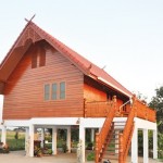 ตัวบ้านขนาด 2 ชั้น ก่อสร้างด้วยปูน ผนังด้านนอกทาด้วยสีขาว ตกแต่งด้วยเสาอิฐ กับหลังคากระเบื้อง รอบๆบ้านเสริมด้วยสนามหญ้าเรียบเพิ่มความร่มรื่น เมื่อมองจากภายนอก จะมองเห็นระเบียงชั้นสอง ดูโดดเด่น สะดุดตา