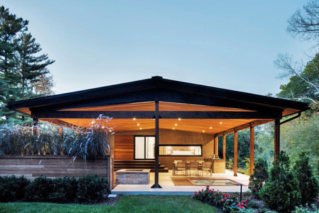 บ้านโครงสร้างคอนกรีต รูปทรงที่หนักแน่น ทันสมัย ตกแต่งด้วยกระจกบานใหญ่ งานโชว์โครงสร้างเหล็กและไม้ ให้ความรู้สึกที่โปร่งโล่ง รับกับงานสมัยใหม่ได้ดีเยี่ยม สอดแทรกงานไม้ที่ดูอบอุ่น ในงานออกแบบ