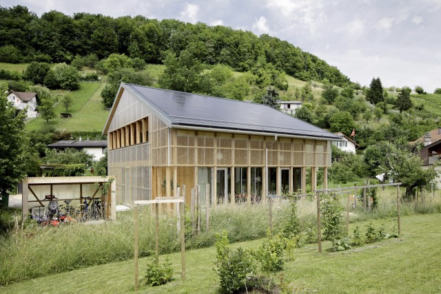 ตัวบ้านโครงสร้างคอนกรีต ตัวบ้านขนาดใหญ่ หลังคาทรงจั่วชิ้นใหญ่ มีความภูมิฐาน ตกแต่งด้วยไม้ทั้งหลัง สีน้ำตาลเข้ม ดูภูมิฐาน สร้างมุมมองและสะท้อนรสนิยมผู้ใช้งานตัวบ้านได้ดีเยี่ยม ตกแต่งเพิ่มเติมด้วยช่องแสงกระจก ดูทันสมัยมากขึ้น