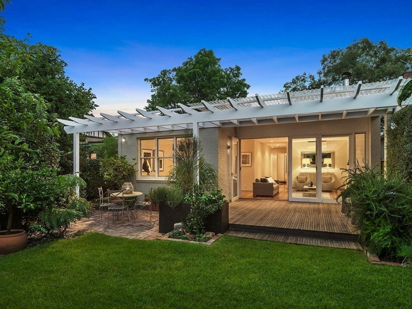 ตัวบ้านขนาดชั้นเดียว โครงสร้างทำจากคอนกรีต ผนังภายนอกฉาบปูนทาด้วยสีเทาอ่อนๆ บริเวณทางเข้าบ้านจะติดกับถนนใหญ่ มีพื้นที่สนามหญ้าที่ด้านหลัง โดยจะมีระเบียงขนาดกว้างไว้ด้วย จัดสรรเป็นพื้นที่พักผ่อนสำหรับวันหยุด หรือจะประยุกต์เป็นห้องรับประทานอาหารกลางแจ้งก็ได้