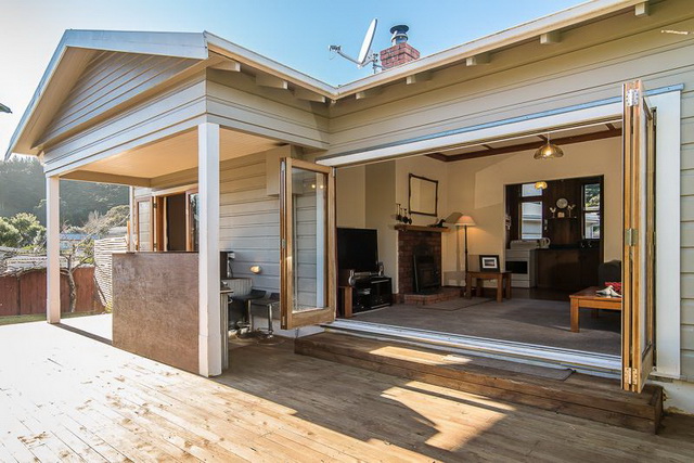 บ้านหลังนี้ตั้งอยู่ท่ามกลางป่าไม้ บนสนามหญ้าโล่งๆ ผนังด้านนอกสร้างด้วยไม้ทาสีขาว มีบริเวณชานบ้านให้นั่งชมทิวทัศน์รอบๆบ้าน หรือจัดปาร์ตี้บาบีคิวก็เหมาะ
