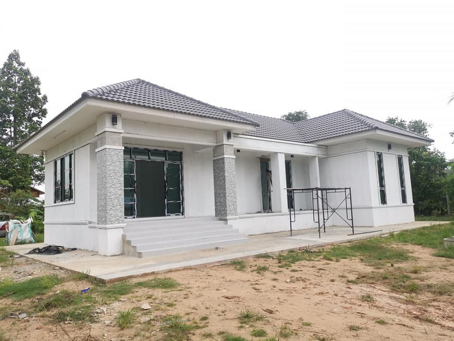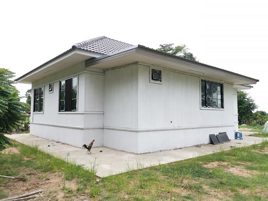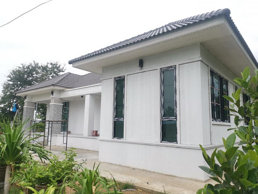 บ้านชั้นเดียวแนวคอนเทมโพรารีหลังนี้ประกอบไปด้วย 3 ห้องนอน 2 ห้องน้ำ 1 ห้องโถงนั่งเล่น 1 ห้องครัว พร้อมระเบียงกว้างหน้าบ้าน งบก่อสร้างอยู่ที่ประมาณ 1.5 ล้านบาท
