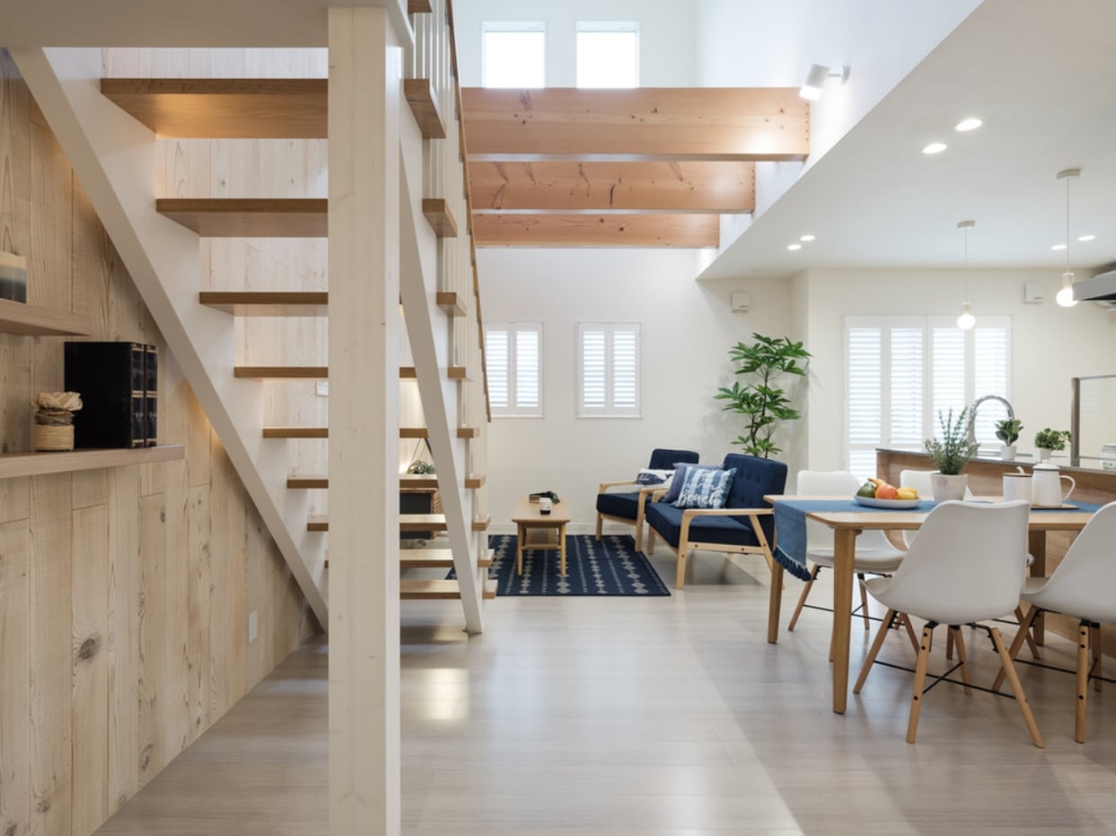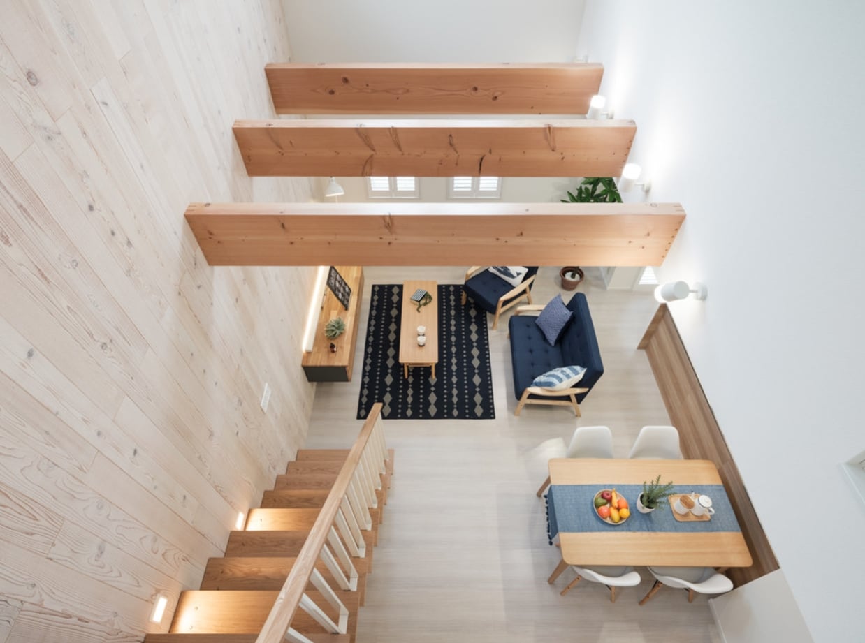 พื้นที่ภายในบ้านมีความสว่างจากโทนสีขาวจากผนัง เฟอร์นิเจอร์ที่ใช้ตกแต่งภายในบ้านก็จะเป็นงานไม้แทบทั้งหมด จึงให้กลิ่นอายแบบบ้านมินิมอล