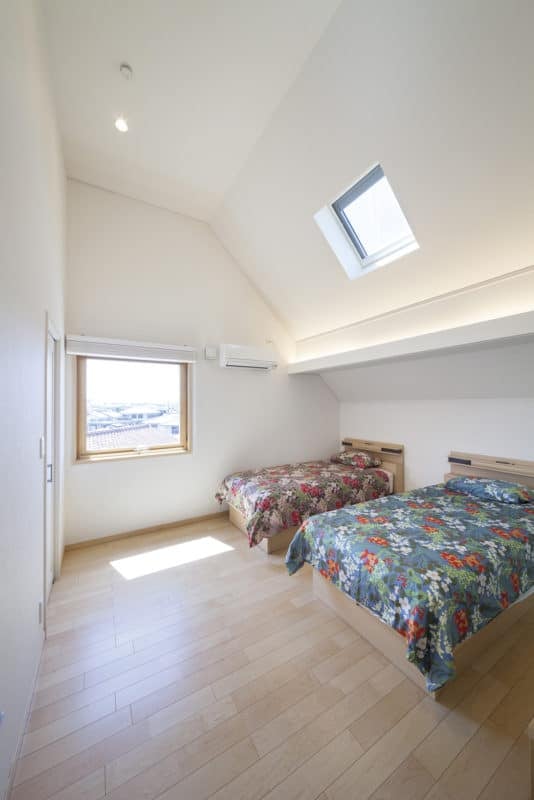 ห้องนอนห้องนี้ การออกแบบจะเน้นพื้นที่ใช้สอยอื่น ๆ แบบกว้าง ในขณะที่เตียงนอนจะมีขนาดเล็กที่เพียงพอกับการนอนคนเดียว