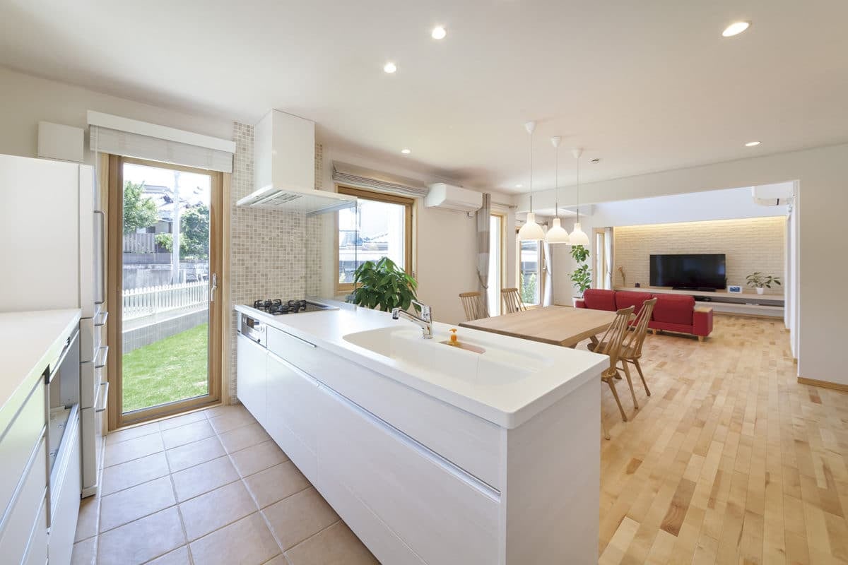 ใกล้ ๆ กันก็จะเป็นพื้นที่ของห้องครัวที่ถูกตกแต่งในโทนสีขาวแบบโมเดิร์น จึงให้ความสวยงาม และอำนวยความสะดวกในทุกเมนูได้อย่างดี