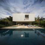 ตัวบ้านนั้นใช้โครงสร้างคอนกรีต ออกแบบรูปทรงที่เรียบง่าย โทนสีขาว-ฟ้าพาสเทล ดูน่ารัก และคุ้นตาชาวไทยมานานไปกับรูปทรงหลังคาทรงจั่วเล็กๆ