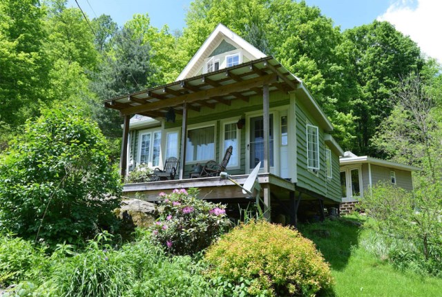 ตัวบ้านโครงสร้างไม้ ออกแบบทรงของบ้านตามแบบฉบับบ้านคอทเทจ มีเฉลียงหน้าบ้าน และใช้หลังคาจั่ว ตกแต่งให้สวยงามจากสีเขียวอ่อนๆ ของไม้ ดูเรียบง่าย อบอุ่น