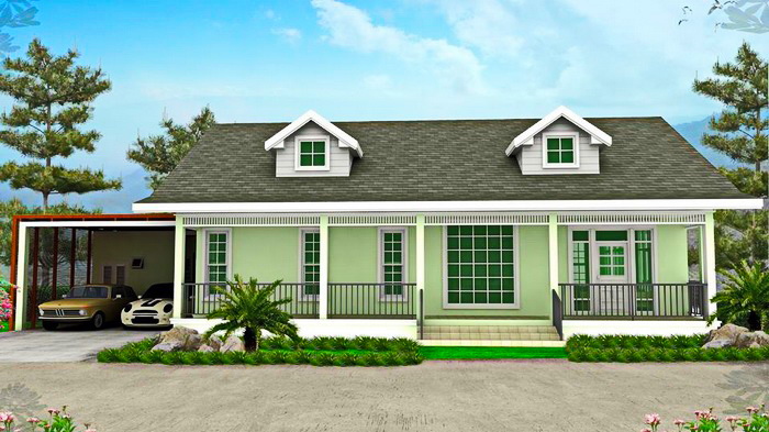 บ้านหลังนี้เป็นบ้านขนาดชั้นเดียว เน้นการออกแบบบ้านในสไตล์ยุโรป ให้กลิ่นอายคันทรี่ผสมกับคอจเทจ ตัวบ้านออกแบบยกพื้นต่ำ จึงมีรากฐานที่มั่นคงแข็งแรง ผนังภายนอกตกแต่งด้วยโทนสีเขียวที่อ่อนโยน ให้บรรยากาศที่ผ่อนคลาย เหมาะแก่การพักผ่อนได้อย่างแท้จริง