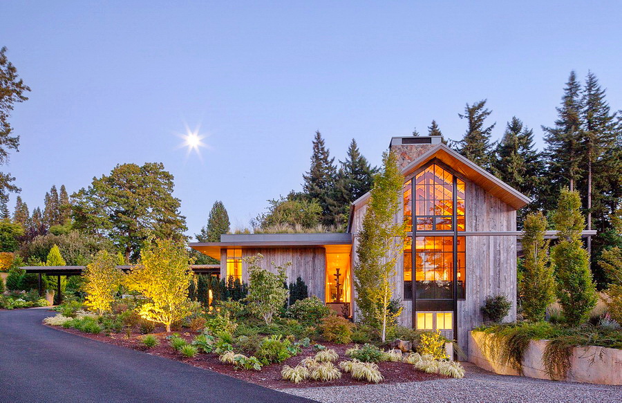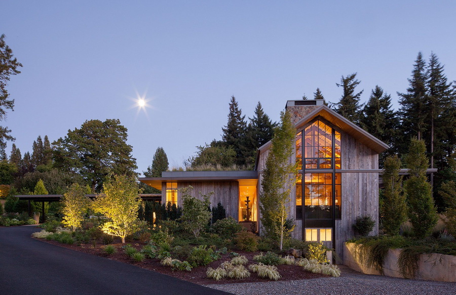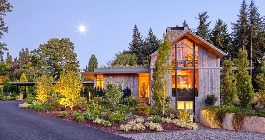 Country Garden House ผลงานการออกแบบโดย JIM OLSON ตั้งอยู่ที่เมือง Portland รัฐ Oregon ดีไซน์ของบ้านมีความเรียบง่ายในรูปทรงเรขาคณิต เสริมความงามด้วยหลังคาทรงหน้าจั่ว วัสดุหลังเป็นไม้ในท้องถิ่น จึงทำให้บ้านมีความกลมกลืนไปกับธรรมชาติ