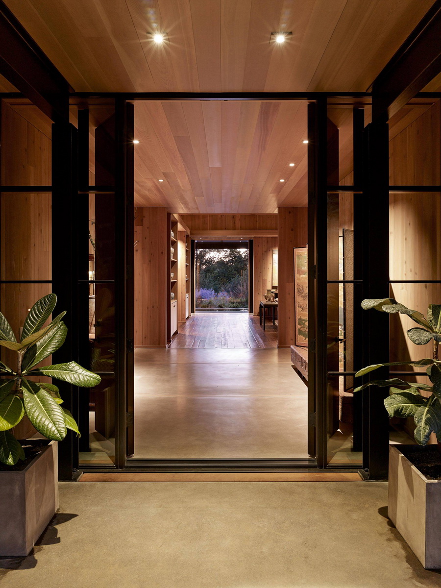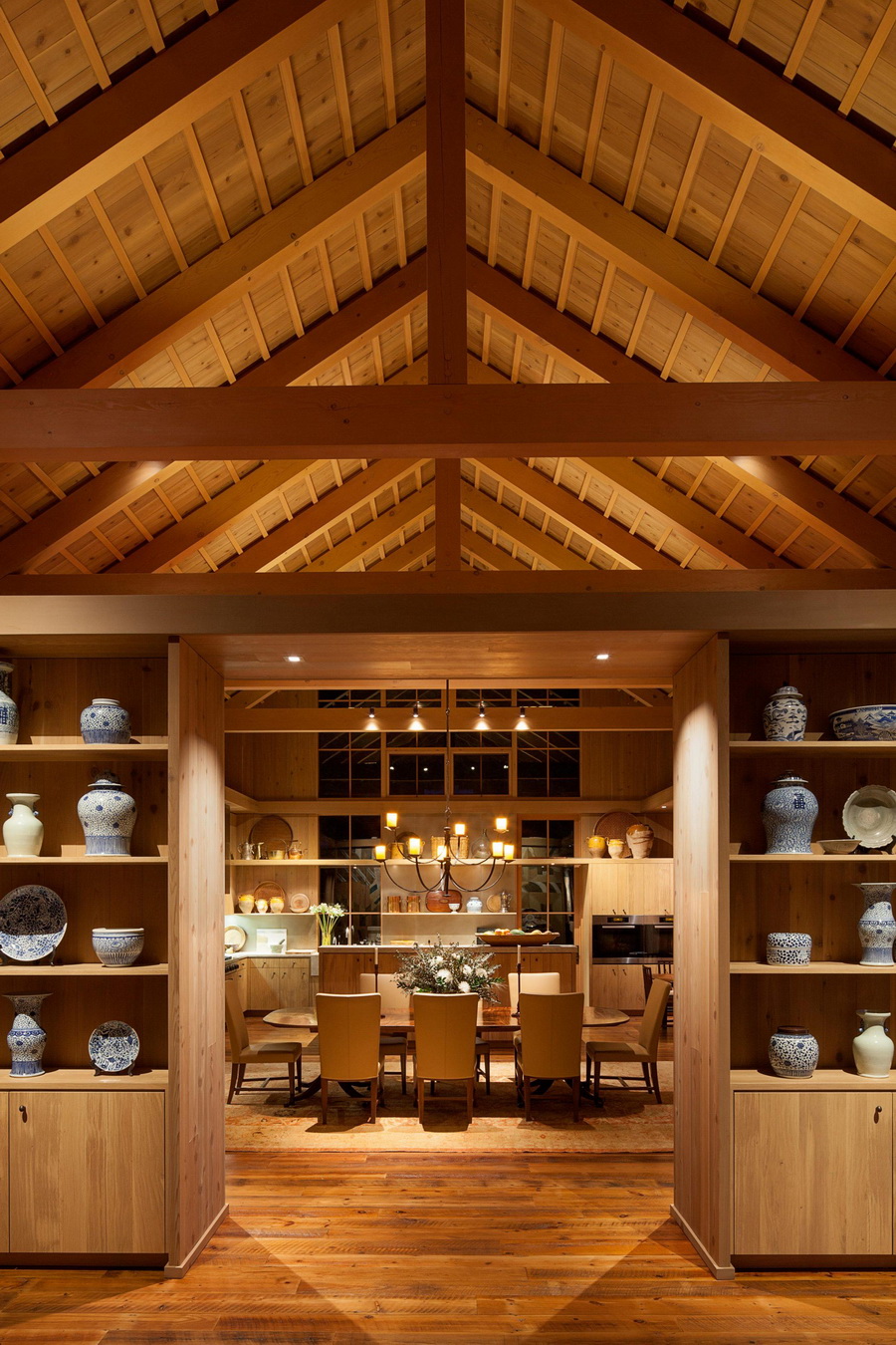 เมื่อเข้ามาภายในบ้าน เราก็จะพบกับการออกแบบที่ดูโมเดิร์นและหรูหรามากกว่าที่เห็นจากภายนอก แต่ในรายละเอียดของวัสดุยังคงเลือกใช้งานไม้ในแบบธรรมชาติ