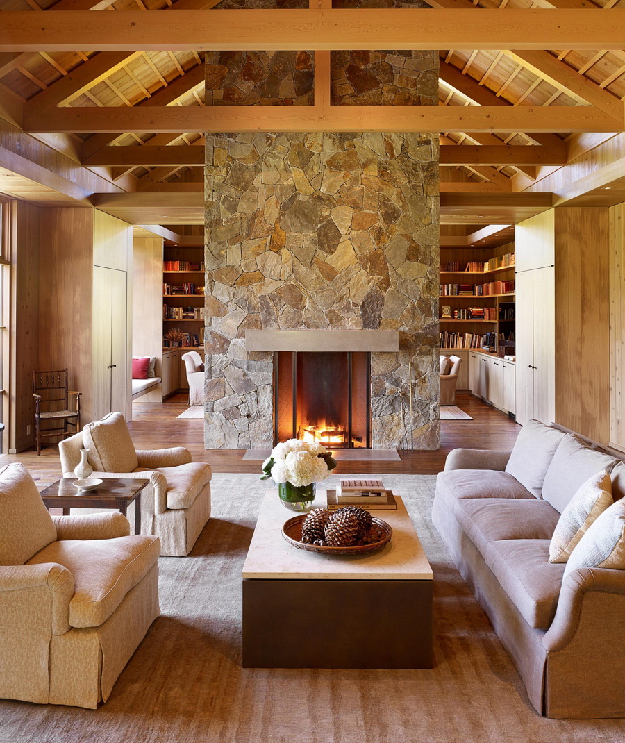 สำหรับห้องโถงบริเวณนี้จะแบ่งพื้นที่การใชงานเป็นสองส่วน ด้านหน้าจะเป็นห้องนั่งเล่น ในขณะที่ด้านในสุดจะเป้นห้องทำงาน ทั้งสองส่วนถูกคั้นกลางด้วยเตาผิงที่ช่วยให้ความอบอุ่นได้ทั่วทั้งห้อง