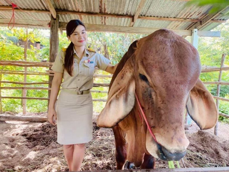 สาวเจ้าของบ้านและวัวที่เธอเลี้ยงเอาไว้