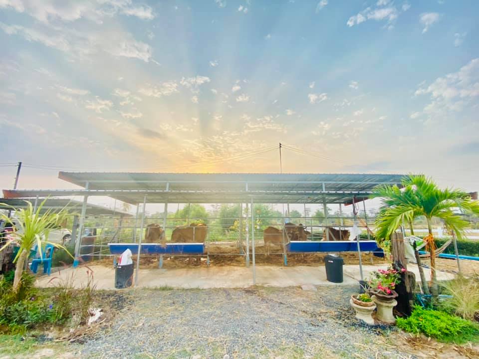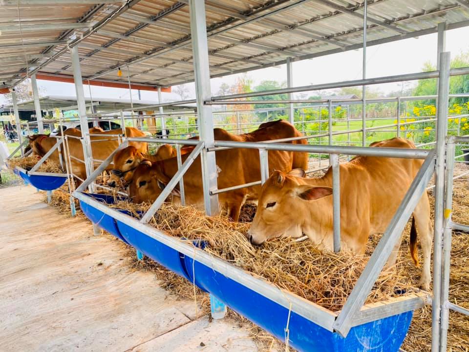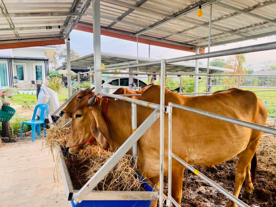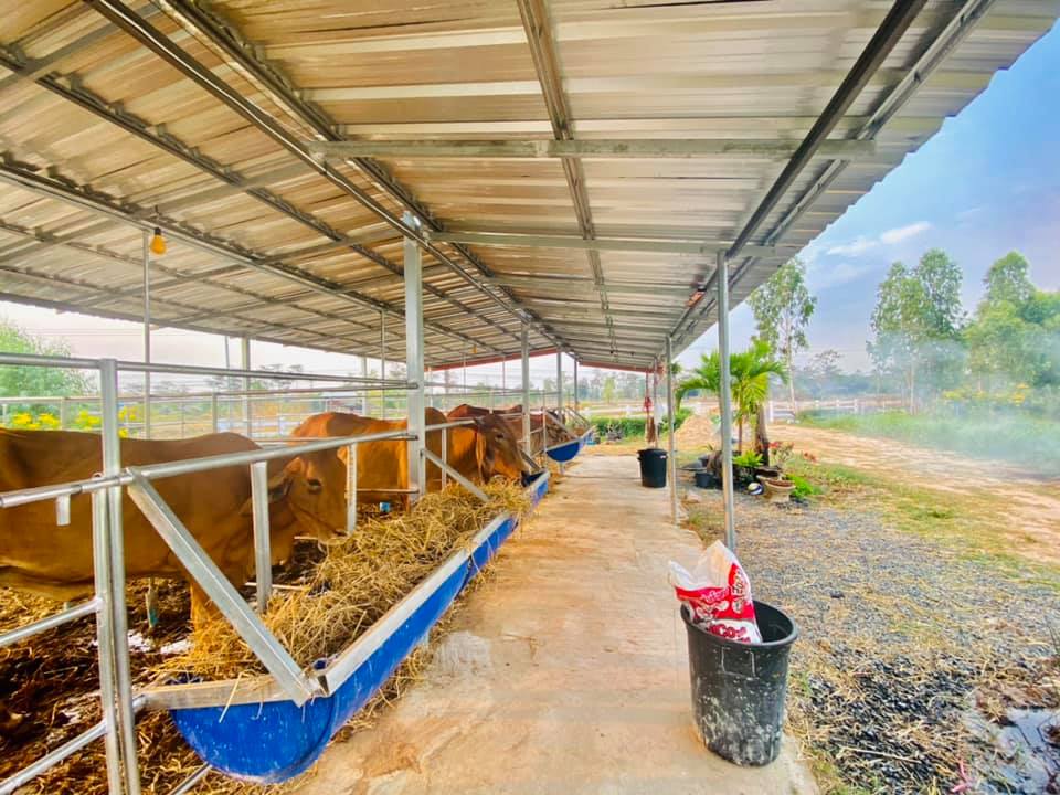 ไม่ไกลจากตัวบ้าน จะเป็นพื้นที่คอกวัว 6 ตัวที่เธอเลี้ยงเอาไว้ โดยจะเป็นคอกแบบเปิด จึงสามารถดูแลทำความสะอาดได้ง่าย ทั้งกลิ่นยังไม่อับอีกด้วย