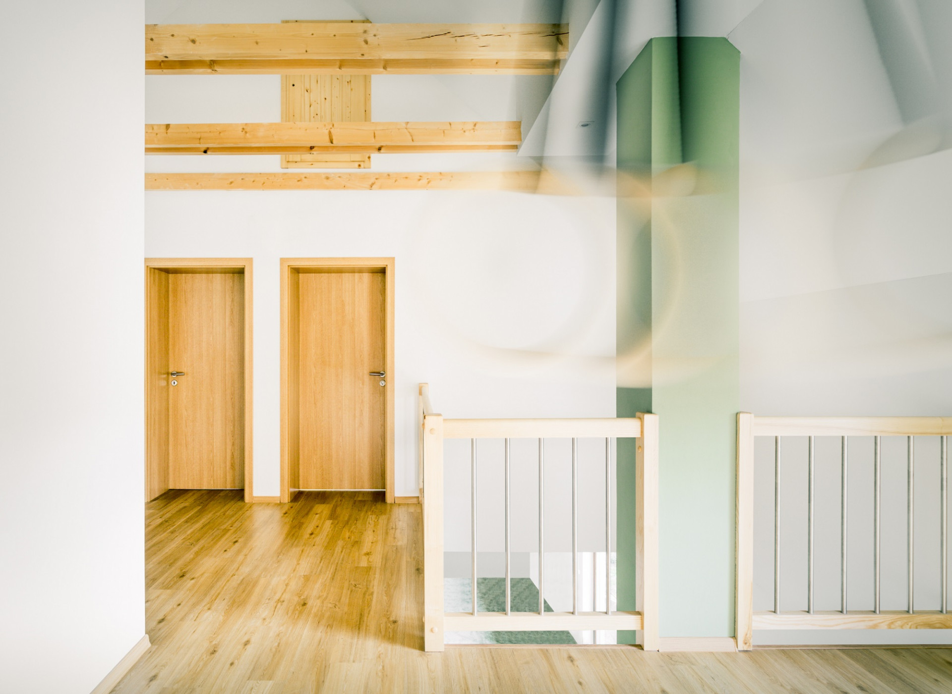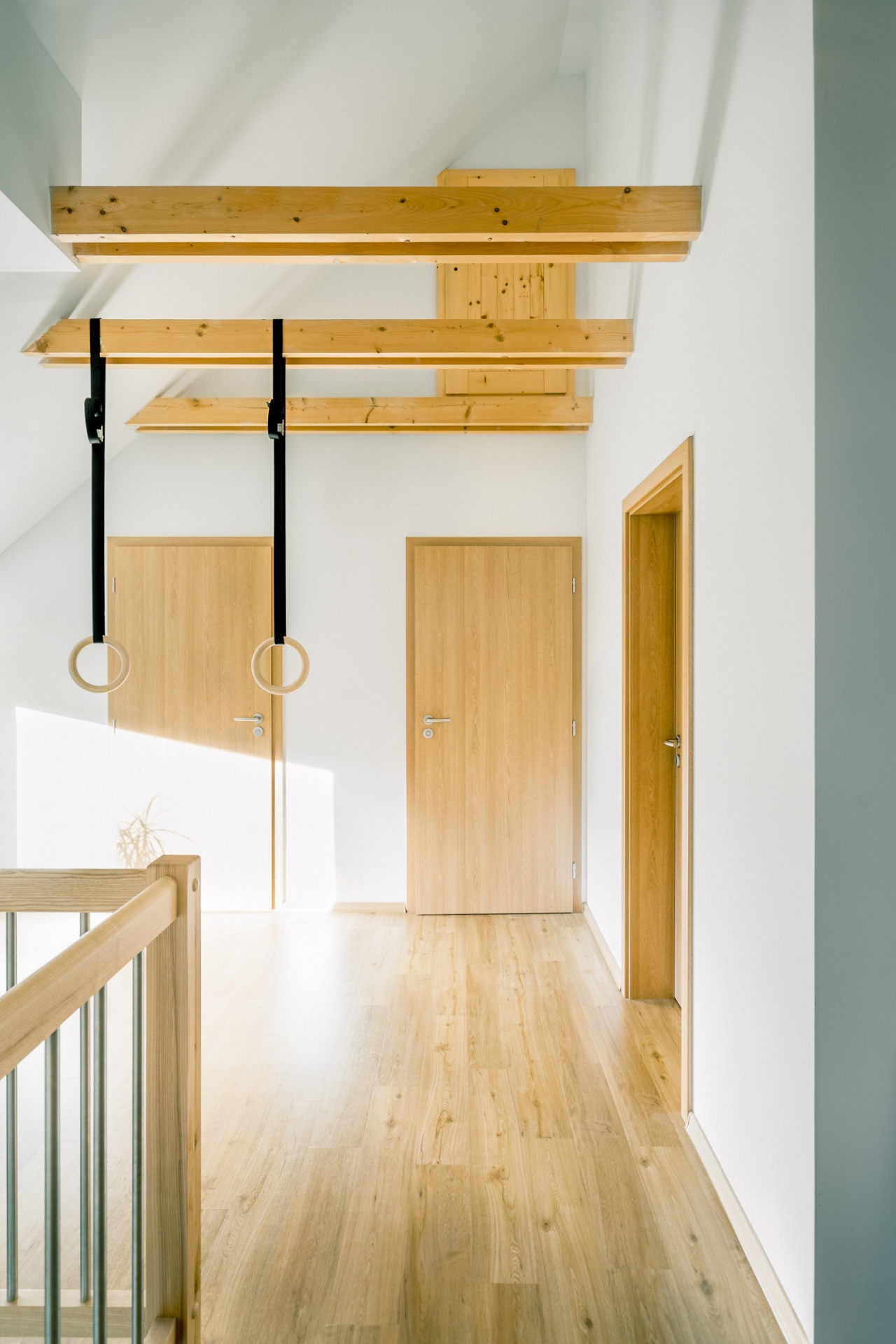 บริเวณพื้นที่ชั้นลอยของบ้าน มีหน้าต่างรับแสงขนาดพอเหมาะ โดยเจ้าของได้ใช้มุมนี้เป็นพื้นที่ออกกำลังกายแบบยิมนาสติกอีกด้วย