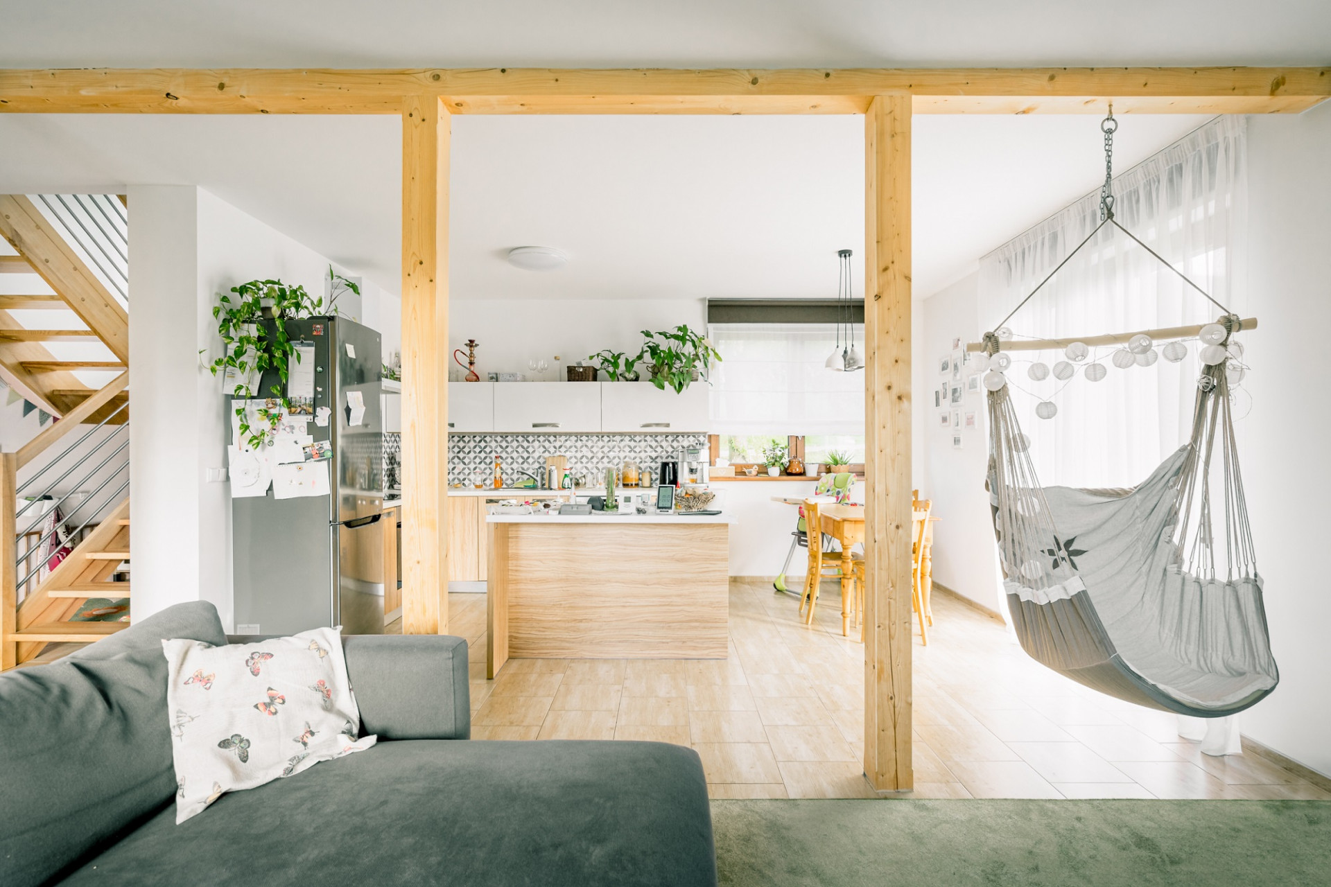 รูปแบบการตกแต่งภายในบ้านก็จะเน้นผนังโทนสีขาวครีม เคียงคู่ไปกับองค์ประกอบส่วนอื่น ๆ ที่เป็นงานไม้ในโทนสีอ่อน