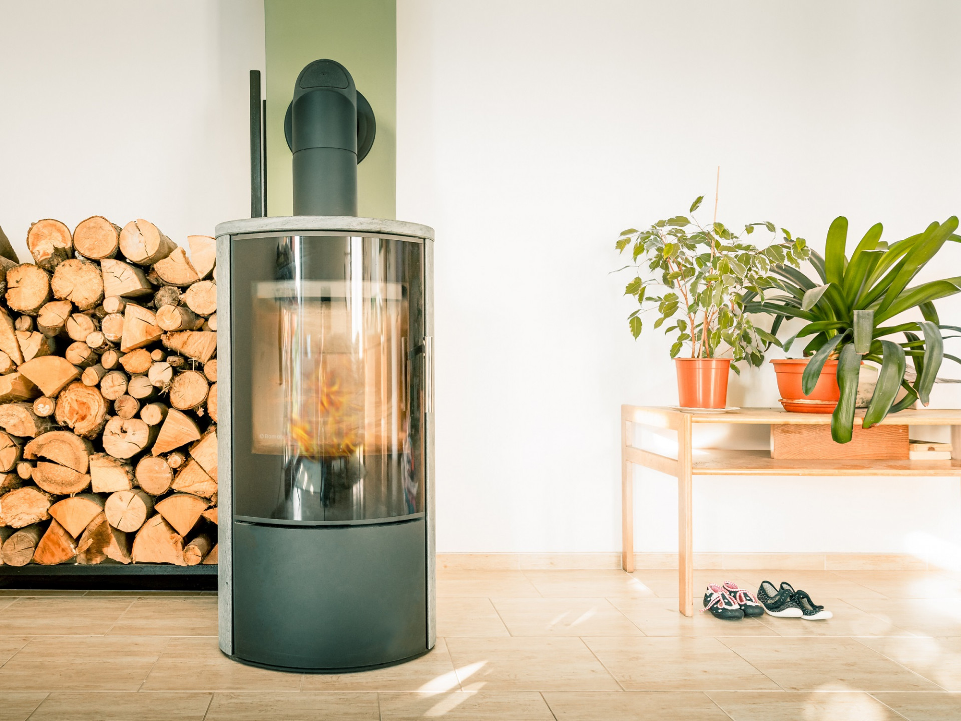 มุมนี้เป็นที่ตั้งของเตาผิงไฟที่มาในรูปลักษณ์แบบโมเดิร์น ทำให้ดูทันสมัยน่าใช้งาน แถมยังกินพื้นที่ในบ้านไม่มากอีกด้วย