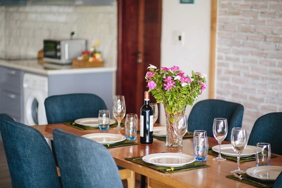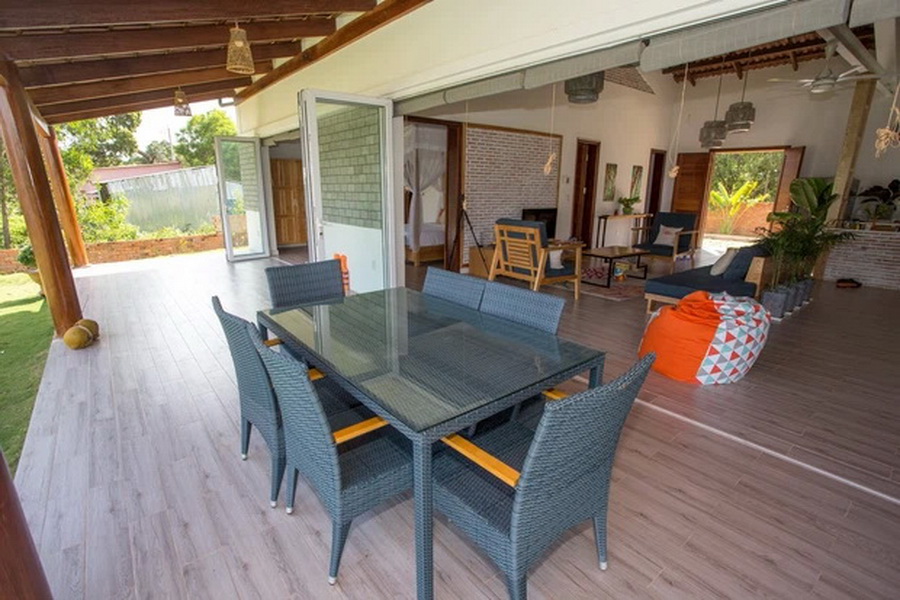 อย่างเช่นมุมนี้ที่ถูกจัดวางด้วยโต๊ะรับประทานอาหารเอาไว้ จึงเหมาะกับบรรยากาศการรับประทานอาหารเช้า หรือมื้อค่ำที่เห็นวิวของชายหาด