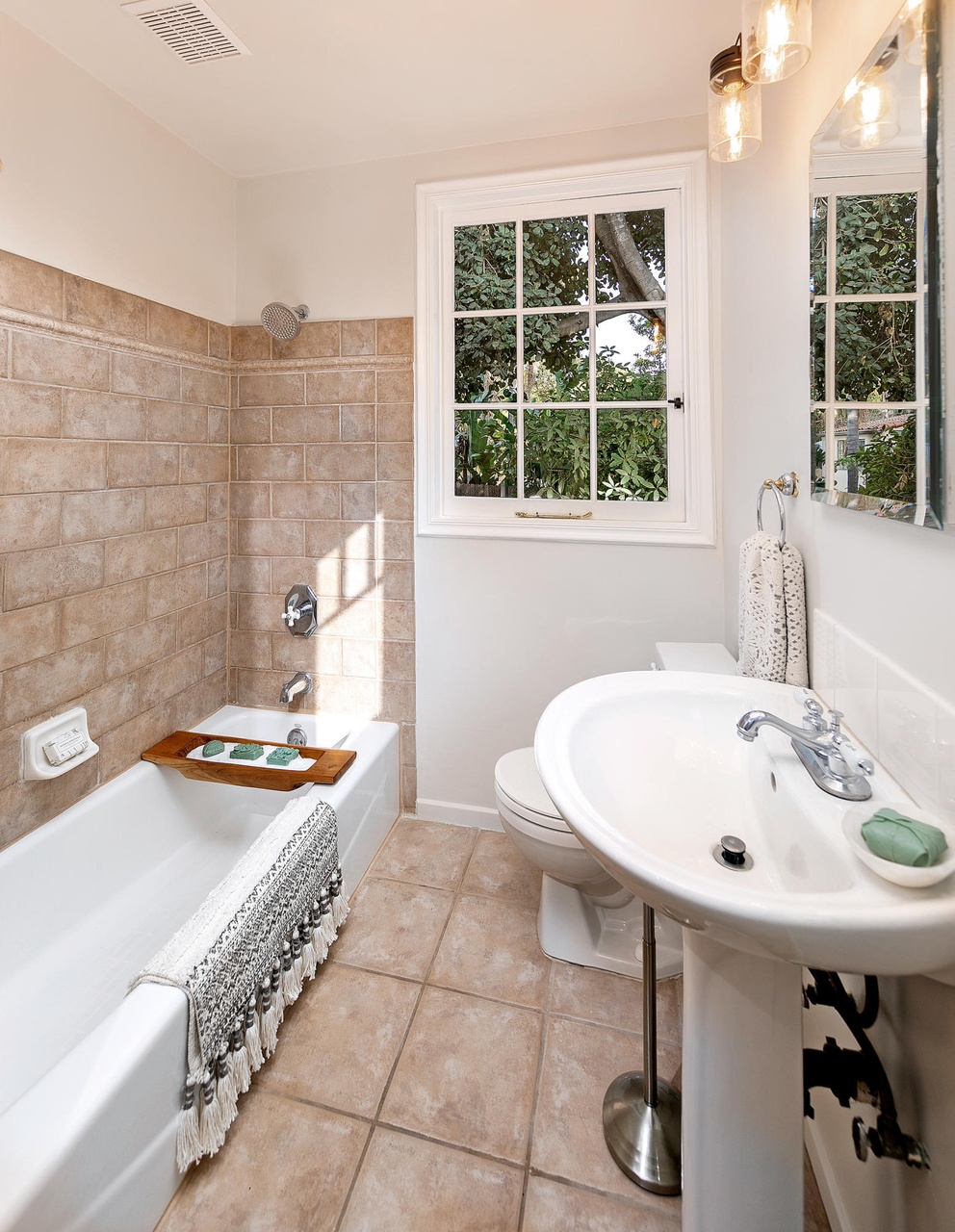 สำหรับห้องน้ำ แม้จะมีพื้นที่ภายในไม่มาก แต่ก็จัดสรรองค์ประกอบสำคัญ ๆ เอาไว้ภายในห้องได้อย่างครบถ้วน ภายใต้บรรยากาศที่อบอุ่นและผ่อนคลาย