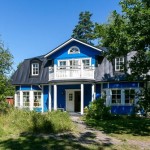 ตัวบ้านภายนอกสร้างด้วยวัสดุไม้ ทาด้วยสีขาวตัดด้วยขอบสีชมพู ให้ความรู้สึกที่น่ารัก จัดสวนดอกไม้บริเวณหน้าบ้านเพิ่มความร่มรื่นได้เป็นอย่างดี บริเวณทางเข้าบ้านมีชานบ้านขนาดย่อมที่ดูอบอุ่นและต้อนรับอย่างดี
