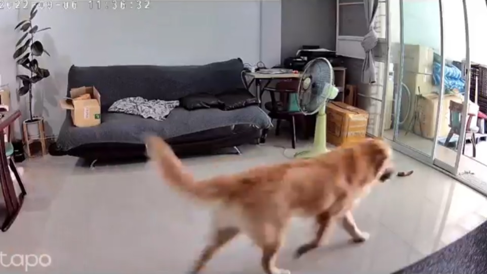 พอน้องเด้นได้ยิน จึงรีบวิ่งออกไปด้วยความเร็วสูง จนกล้องเกือบจะจับภาพไว้ไม่ทัน