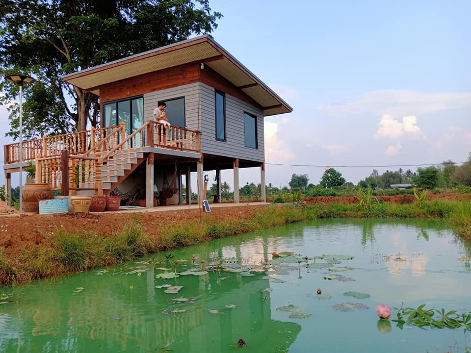 ซึ่งวันนี้เราก็จะลองไปชมไอเดียบ้านในสวนเกษตรแห่งนี้กัน โดยการออกแบบบ้านหลังนี้นั้นจะมีดีไซน์ที่เรียบง่าย ตัวบ้านให้ดีไซน์เรียบ ๆ แบบโมเดิร์นที่มาพร้อมหลังคาทรงเพิงหมาแหงน นอกจากนี้ยังมีเฉลียงกว้างและใต้ถุนยกสูงตามสไตล์บ้านสวนอีกด้วย