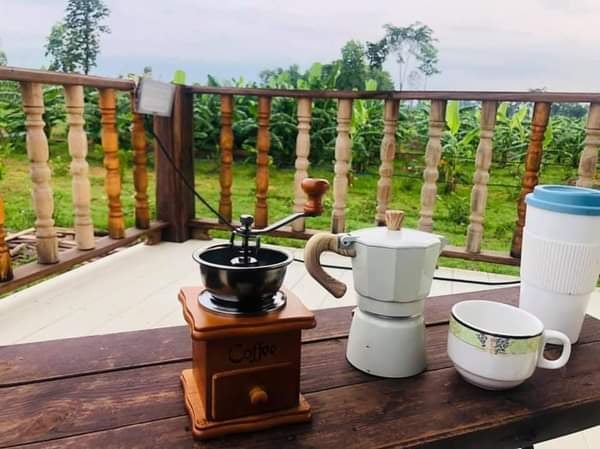 ช่วงเช้า ๆ สามารถมานั่งสูดอากาศบริเวณเฉลียงพร้อมกับบดกาแฟไปด้วย ฟินสุด ๆ