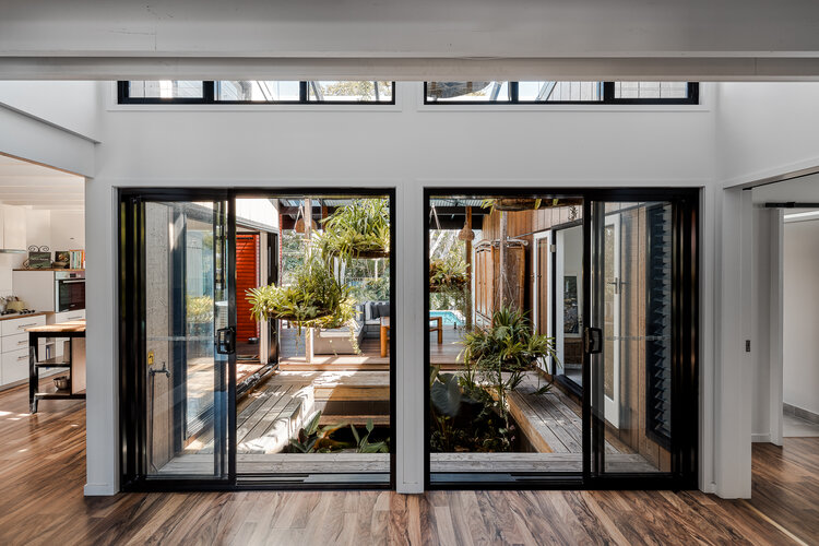 อีกหนึ่งการออกแบบที่น่าสนใจ คือ การออกแบบผนังหลาย ๆ มุมด้วยกระจกใส มีหน้าต่างจำนวนหลายบาน จึงทำให้บ้านสามารถเชื่อมต่อกับพื้นที่ภายนอกบ้านได้อย่างกลมกลืน