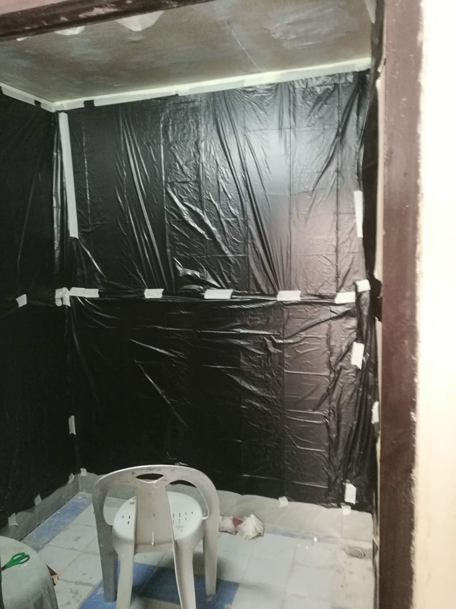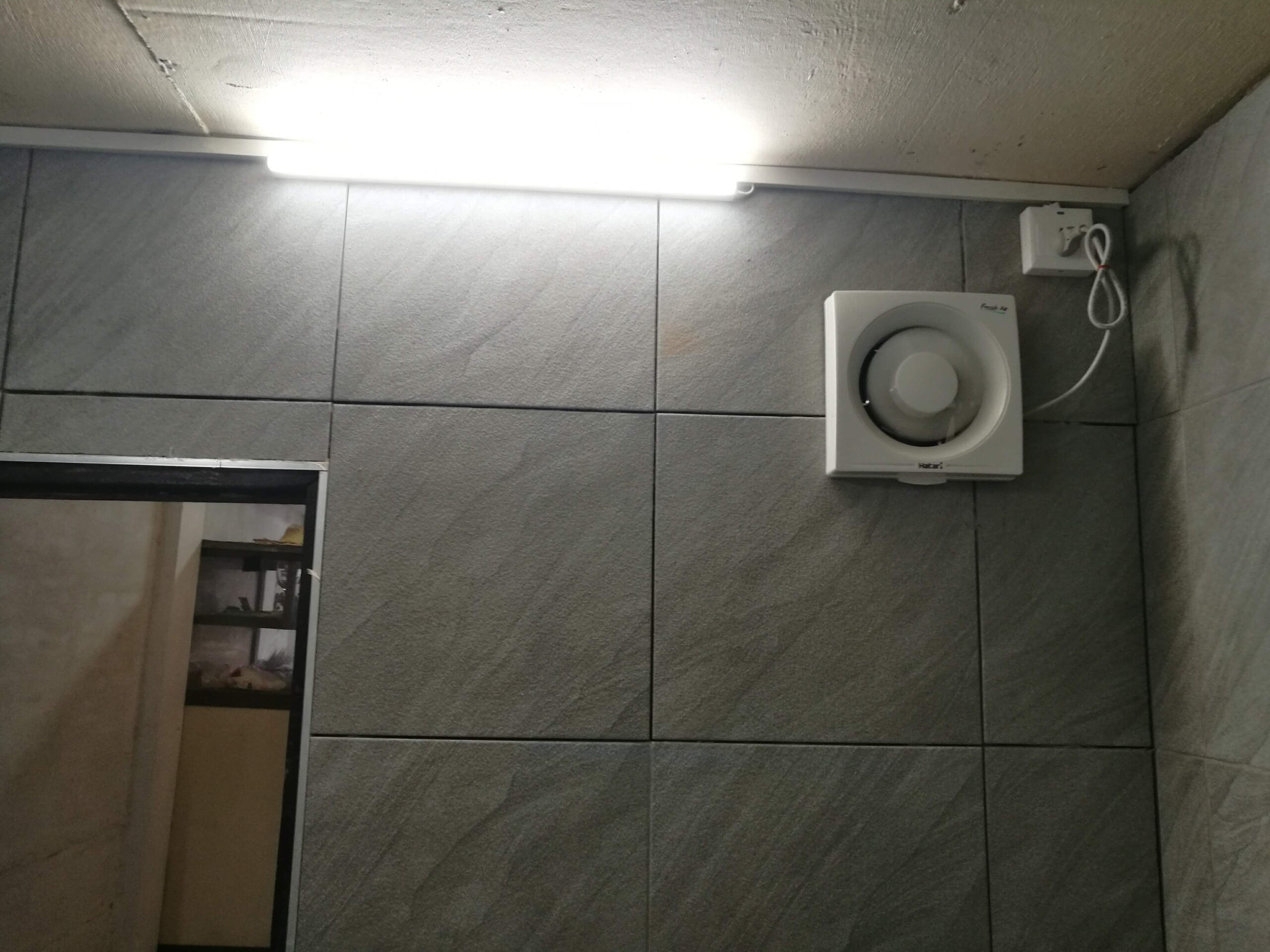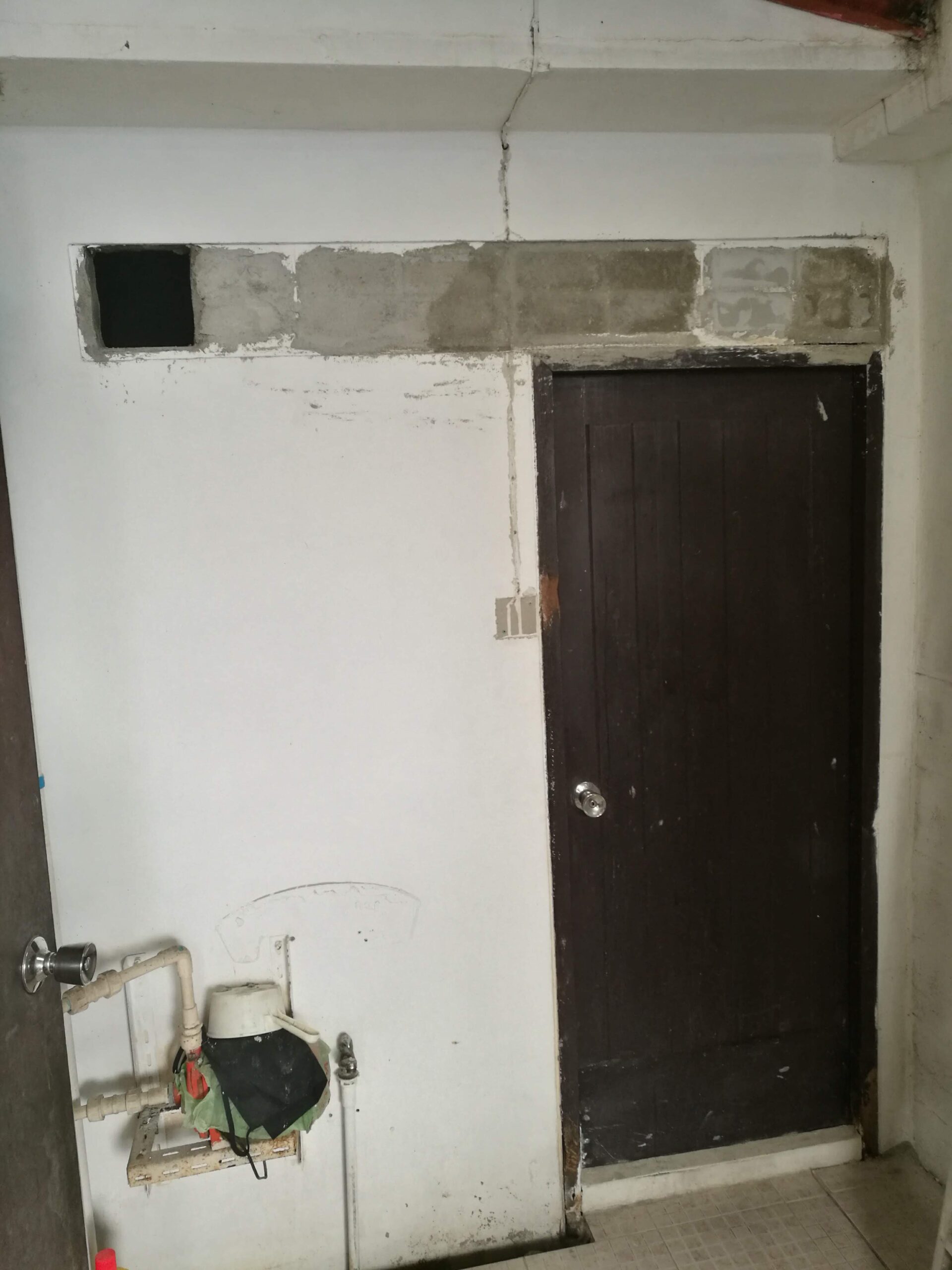 วันที่ 7 เจาะผนังเพื่อเตรียมติดพัดลมดูดอากาศ และ โบกปูนปิดช่องลม แค่นี้ก็หมดวันละ