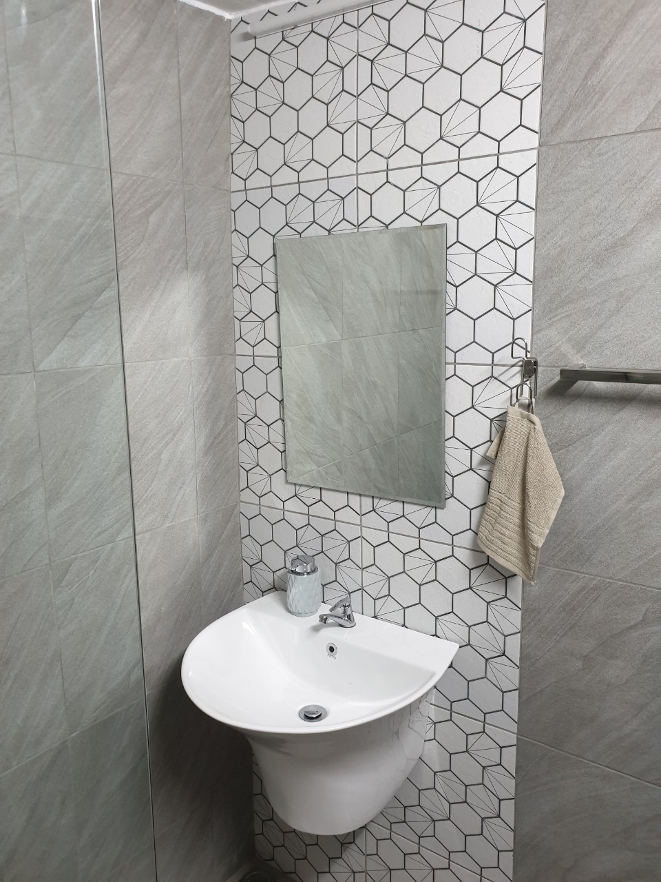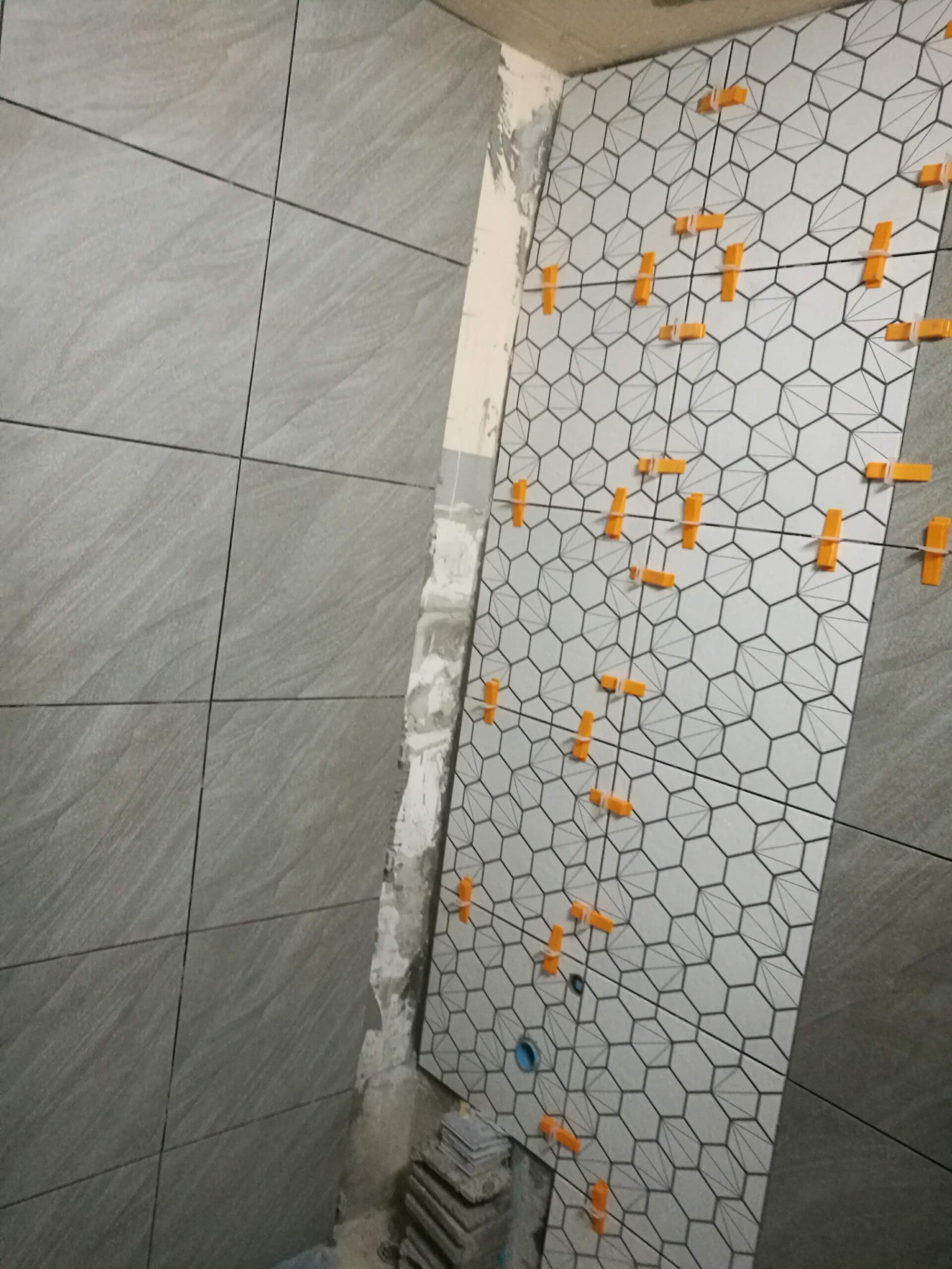 วันที่ 12 – 15 ปูกระเบื้อผนัง 3 วันติด ส่วนกระเบื้องตรงมุมห้องน้ำ เนื่องจากเราไม่มีเครื่องตัดกระเบื้องเลยใช้ลูกหนูตัดแทน ก็อยู่ในเกณฑ์ที่รับได้ไม่ถือว่าน่าเกียจมาก