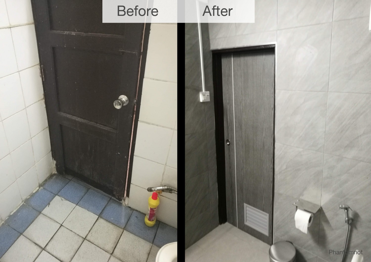 วันที่ 1 เริ่มด้วยการสำรวจว่าต้องทำอะไรบ้าง ซ่อมอะไรก่อน อะไรหลัง list อุปกรณ์และเครื่องมือสำหรับทำ ปัญหาที่เจอคือ เพดานระเบิดเห็นเหล็กขึ้นสนิม เกิดจากน้ำที่ท่วมขังจากด้านบน, ไม่มีท่อน้ำทิ้งจากอ่างล้างมือ, ตำแหน่งก๊อกน้ำอยู่สูงไป, กระเบื้องผนังร่อน, ไม่มีอากาศถ่ายเท, ประตูผุตามอายุ ปัญหาประมาณนี้
