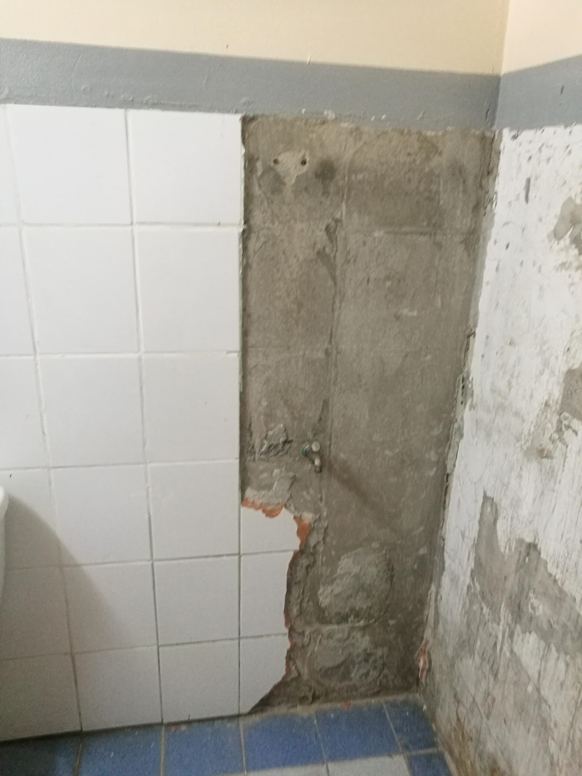 วันที่ 4 เริ่มรื้อกระเบื้องผนังออก ไม่ยากเท่าไหร่เนื่องจากกระเบื้องเก่าร่อนอยู่แล้วรีบทำรีบเก็บเกรงใจเพื่อนบ้าน เพราะเสียงดังมาก