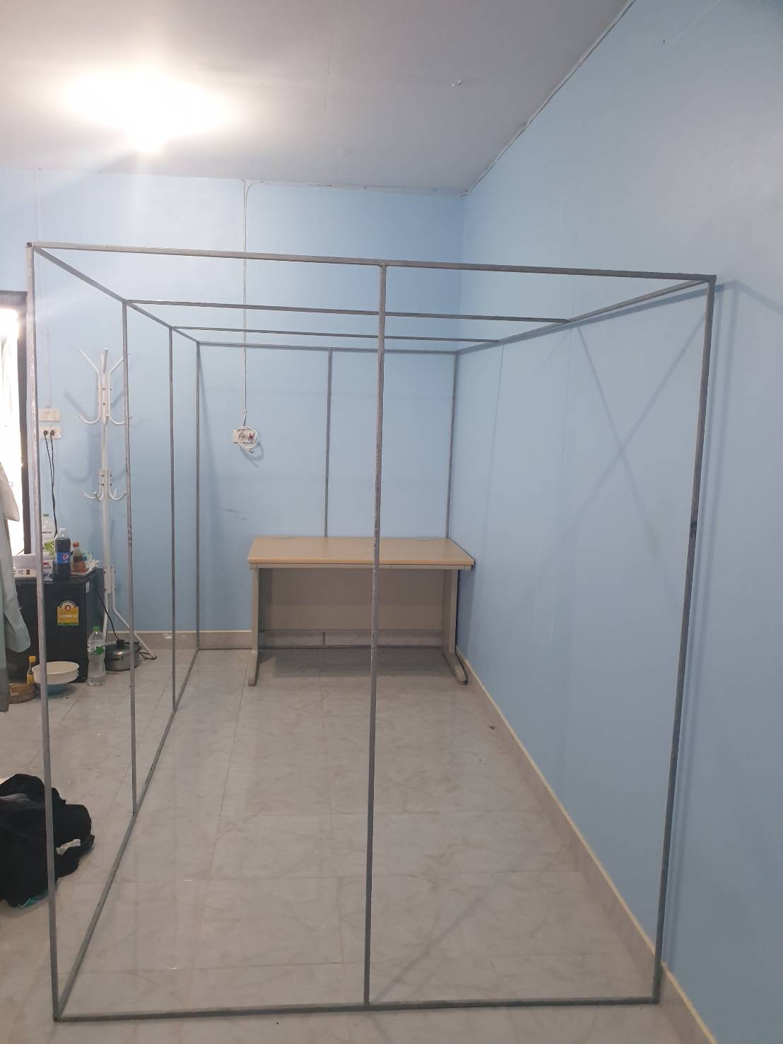 นี่คือภาพของการทำห้อง ขนาด 1.5 m x 3.0 m. x 1.8 m. โดย jomperspect วิศวกร Save Cost โดยที่ไม่ต้องแปะเทพกาวตรงผนัง ไม่ต้องติดกาวสองหน้า ไม่ต้องเจาะ เหมาะสำหรับไปได้ทุกที่ครับ