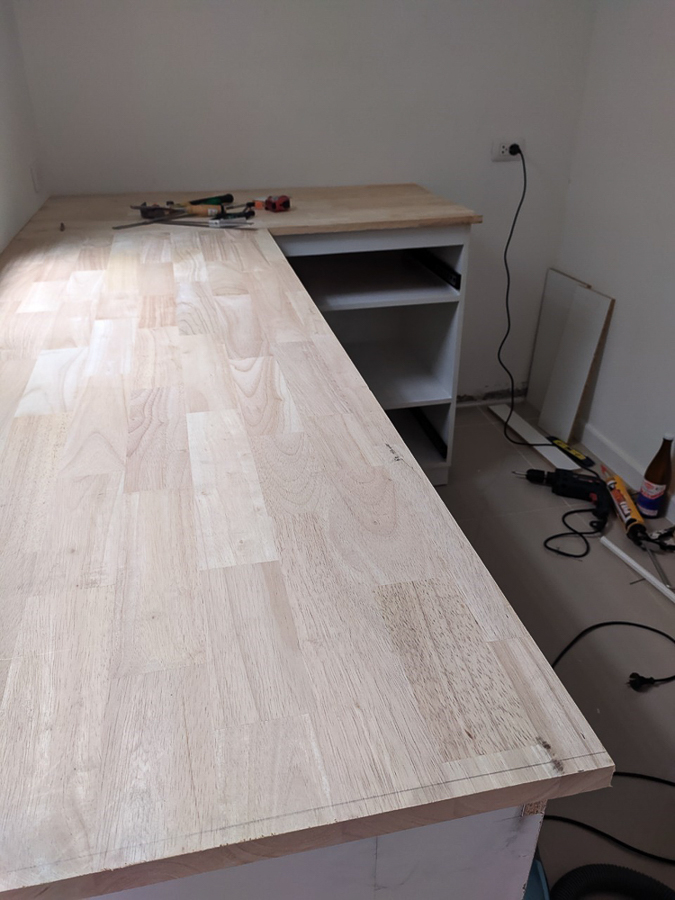 ไม้ท๊อปใช้ยางพาราประสาน 20 mm เกรด aa สั่งจากร้าน Interwood timber แผ่นเดียวก็ส่ง ค่าไม้ 1650 บาท ค่าส่งมาชลบุรี 250 บาท